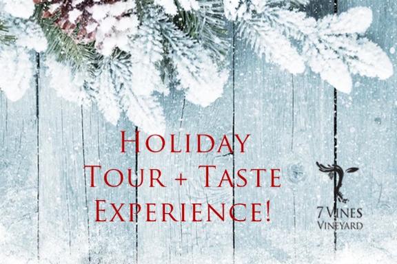 Experience a tasting paired with small bites of our 7 Vines Wines! This holiday experience will include 2 additional wine pours, a holiday pairing guide, and gifting suggestions. The 7 Vines Vineyard logo tasting glass is yours to keep! Join us!